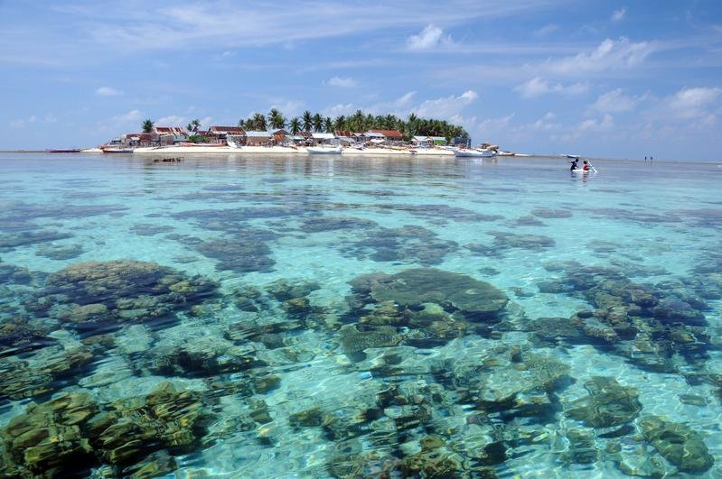 Flache Koralleninseln wie diese Insel im indonesischen Spermonde Archipel sind Gefährdungen durch Meeresspiegelanstieg und andere Umweltveränderungen besonders ausgesetzt. Sebastian Ferse, Leibniz-Zentrum für Marine Tropenforschung