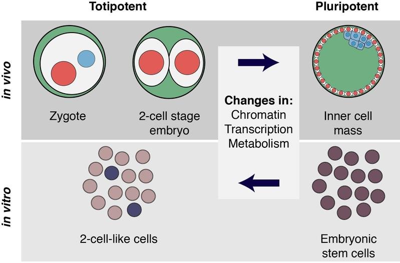 Totipotente Zellen besitzen die Fähigkeit, einen vollständigen Organismus zu erzeugen. Im Embryo findet man sie nur in den ersten beiden Entwicklungsstadien kurz nach der Befruchtung, danach sind sie pluripotent. Pluripotente Zellen, besser bekannt als Stammzellen, haben einen Teil des ursprünglichen Potenzials verloren und können sich nur noch zu den unterschiedlichen Zelltypen eines Organismus weiterentwickeln. Forschende versuchen so viel wie möglich über die Unterschiede zwischen Pluri- und Totipotenz herauszufinden. Denn eine Aufhebung dieser Unterschiede könnte dazu führen, dass pluripotente Zellen wieder totipotent werden. Bisher war noch nicht bekannt, ob sich toptipotente Zellen von pluripotenten in ihren metabolischen Bedürfnissen und Aktivitäten unterscheiden.