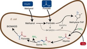 Damit E. coli Ameisensäure in Biomasse umwandelt, waren einige wichtige Veränderungen nötig. So musste zunächst ein völlig neuer Syntheseweg für Glycin und Serin entworfen werden, welcher die Herstellung dieser Aminosäuren ausgehend von Ameisensäure sicherstellt. Weiterhin mussten die dafür benötigten Gene in das Bakteriengenom eingefügt werden. Die Wissenschaftler gliederten die benötigten Gene in vier Module. Das erste Modul bestand aus 3 Genen des Bakteriums Methylobacterium extorquens, mit denen die Verstoffwechselung der Ameisensäure startete. Das zweite Modul beinhaltete drei in E. coli natürlich vorkommende Gene, deren Ableserate (Expression) vielfach erhöht wurde. Die Einbringung von den ersten zwei Modulen führte dazu, dass E. coli in der Lage war, Ameisensäure in die Aminosäuren Glycin und Serin umzuwandeln. Das dritte Modul bestand wiederum aus zwei natürlicherweise in E. coli vorkommenden Genen, deren Expression erhöht wurde, damit als Endprodukt des neuen Synthesewegs Pyruvat gebildet wird. Dieser Stoff ist ein wichtiger Ausgangsstoff für viele weitere zentrale Stoffwechselwege, die letztendlich zur Produktion von Biomasse führen. Zu Guter Letzt wurde ein Gen aus dem Bakterium Pseudomonas sp. eingebracht, um die Energie für das Zellwachstum bereitzustellen (Modul 4).