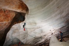 Für die jüngere Vergangenheit ist die Bilanz der Eishöhlen klar negativ: „Nicht nur Gletscher zeigen eine überdurchschnittlich negative Massenbilanz besonders in den letzten Jahrzehnten. Auch das Eis der Eishöhlen ist von den Folgen des Temperaturanstiegs und der rückläufigen Niederschlagsmengen stark betroffen“, sagt Tanguy Racine. „Wir sehen eine Geschwindigkeit des Eisrückgangs, die in keiner Periode in unserem Messzeitraum der letzten 2000 Jahre zu beobachten war. Um einige Beispiele zu nennen: Das Monitoring im Guffert Eisschacht in Steinberg am Rofan ergab einen Rückgang der Schneeoberfläche um fast drei Meter zwischen 2019 und 2021. Die Eisgruben Eishöhle am Sarstein in Oberösterreich hat innerhalb von 40 Jahren 10 Meter Eisdicke verloren. Der Eisverlust im Kraterschacht im Sengsengebirge Oberösterreichs beträgt 20 Meter in 20 Jahren“. Die Erklärung für diese Entwicklung ist analog zu den Gletschern der menschengemachte Klimawandel. „Besonders für die mittleren und kleineren Eishöhlen müssen wir davon ausgehen, dass sie in den nächsten Jahren bis Jahrzehnten massiv an Eismasse einbüßen oder sogar gänzlich eisfrei werden“, verdeutlich Racine. „Die Uhr tickt laut.“
