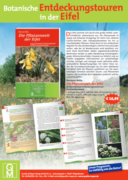 Die Pflanzenwelt der Eifel, 26 faszinierende Entdeckungstouren auf Rundwanderungen von Hermann Bothe, erschienen beim Verlag Quelle und Meyer Wiebelsheim ISBN 978-3-494-01579-8